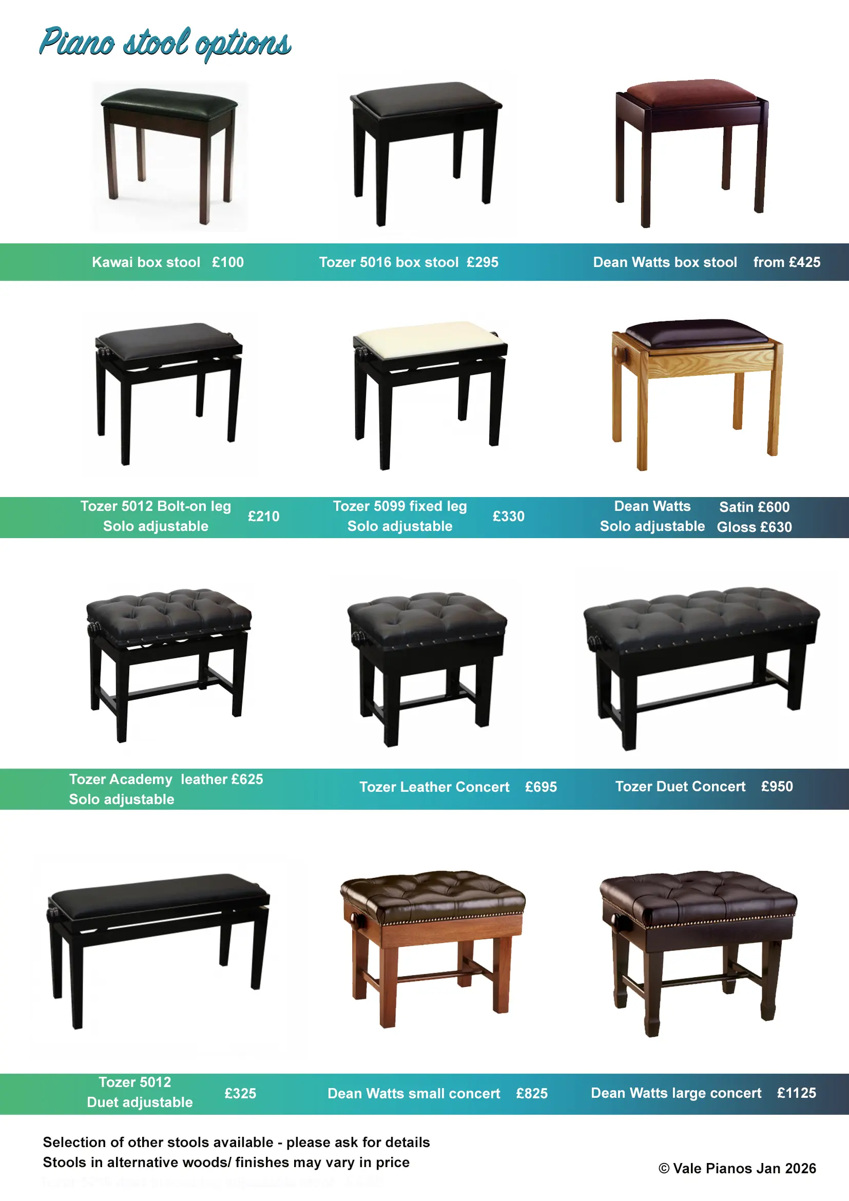 If you would like further information on any of these piano stools, please let us know and we’ll be happy to help.