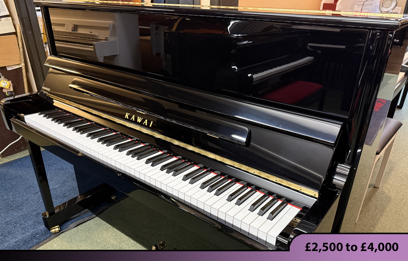 Beautiful example of this hugely popular Kawai upright piano. The K3 gives elegant casework lines and a quality tone with larger bass than the smaller K15 and K2/ K200 models.